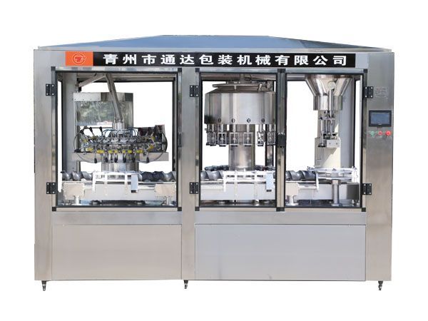 本机是冲瓶、灌装、打塞一体机,采用变频调速,可根据后到工序快慢调整灌装速度,三联机整机是一套动力传动,实现三机一体化,整套机器传动平稳,同步性强,操作简单,适用方便用于葡萄酒、果酒类灌装。